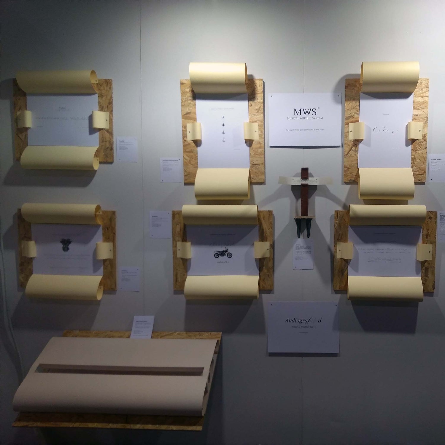 Transcribing sounds is my identity. Like a reporter I capture unique and unrepeatable sound moments and make them visible. Then I fix them preferably on paper and wrap them with wood. I am an Audiographer.